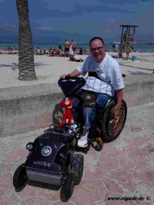 Letztendlich ließen wir uns vom rolligerechten Hotelbus, der eine Hebebühne hat, abholen. Uns zwei Aktivrollifahrer trugen sie Treppe runter, während der Elektrorollstuhl mit Fahrer von der kleineren Treppe des Hinterausgangs mit Behelfsrampen direkt über die Hebebühne in den Hotelbus fuhr. Die Behelfsrampen hätte man auch gut als Bierbänke nehmen können. Das hätte ich an seiner Stelle in Deutschland niemals getan, dafür gibt es die 112.