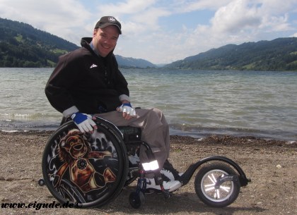 It appeared that a nurse had placed the hospital bed by accident on one of the wheelchair brakes. The brake lever extension reached about 5 cm beyond the wheelchair and must have been in the way. When we learned that the frame had been damaged and there were no more spare parts available for this old wheelchair, I was close to tears. All the special parts and modifications: Speedy Electra/Bike, Stricker Bike, Mini-Trac, Free-Wheel, mountain bike wheels and – most importantly it fit on to the loading system of my car! Not to mention all the other special equipment (see older posts). What we have been through together… 500 blogs on the www.eigude.de by now!