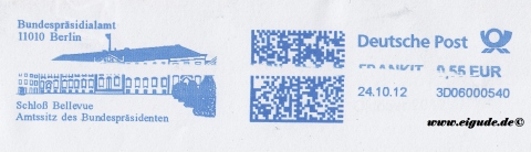 Bereits am Freitag den 25.10.2012, 10 Tage nach der E-Mail, erhielt ich einen Brief vom Schloss Bellvevue, siehe Stempel.